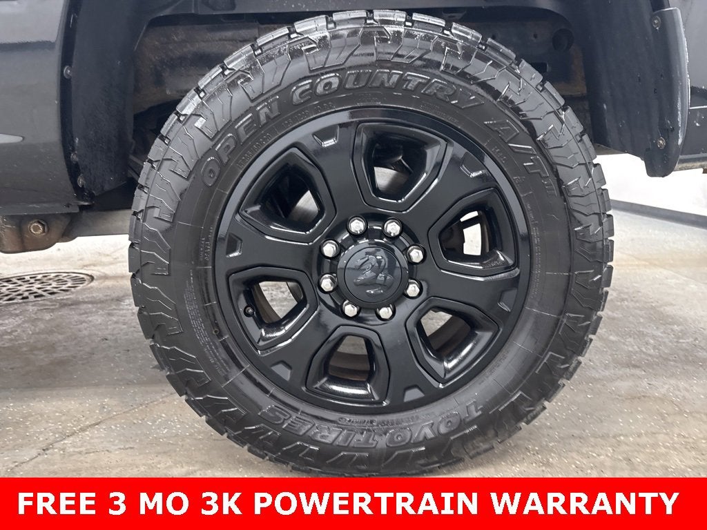 115V Auxiliary Power Outlet, 180 Amp Alternator, 3.73 Rear Axle Ratio, 4-Wheel Disc Brakes, 40/20/40 Split Bench Seat, 6 Month Trial (Registration Required), 6 Speakers, 8.4 Touchscreen Display, ABS brakes, Air Conditioning, Air Conditioning ATC w/Dual Zone Control, AM/FM radio: SiriusXM, Anti-Spin Differential Rear Axle, Auto-Dimming Exterior Mirrors, Big Horn Badge, Big Horn Regional Package, Black Appearance Group, Black Door Handles, Black Exterior Mirrors, Black Grille Surround w/Black Billet, Black Headlamp Bezels, Black Ram Head Tailgate Badge, Black Tubular Side Steps, Black Wheel Center Hub, Brake assist, Bright/Bright Billets Grille, Bumpers: chrome, Center Hub, Charge Only Remote USB Port, Clearance Lamps, Cloth 40/20/40 Bench Seat, Compass, Delay-off headlights, Driver door bin, Dual front impact airbags, Dual front side impact airbags, Electroluminescent Instrument Cluster, Electronic Stability Control, Electronically Controlled Throttle, Exterior Mirrors Courtesy Lamps, Exterior Mirrors w/Heating Element, Exterior Mirrors w/Supplemental Signals, Flat Black 4x4 Badge, Flat Black Ram 2500 Badge, Fog Lamps, Folding Flat Load Floor Storage, For Details Visit DriveUconnect.com, Front anti-roll bar, Front Armrest w/Cupholders, Front Bumper Sight Shields, Front Center Armrest w/Storage, Front Center Seat Cushion Storage, Front reading lights, Fully automatic headlights, Glove Box Lamp, GPS Antenna Input, Heated door mirrors, Heated Front Seats, Heated Seats & Wheel Group, Heated Steering Wheel, Heavy Duty Snow Plow Prep Group, Hemi Badge, I/P Mounted Auxiliary Switches, Illuminated entry, Integrated Voice Command w/Bluetooth®, Leather Wrapped Steering Wheel, LED Bed Lighting, Locking Tailgate, Low tire pressure warning, Luxury Group, Manual Adjust Seats, Manufacturer's Statement of Origin, Media Hub (2 USB, AUX), Nav-Capable! See Dealer for Details, Next Generation Engine Controller, Occupant sensing airbag, Outside temperature display, Overhead airbag, Overhead console, Overhead Console w/Garage Door Opener, Painted Front Bumper, Painted Rear Bumper, Panic alarm, ParkSense Rear Park Assist System, ParkView Rear Back-Up Camera, Passenger door bin, Passenger vanity mirror, Power 10-Way Driver Seat, Power door mirrors, Power Folding Mirrors, Power Heated Fold-Away Mirrors, Power Lumbar Adjust, Power steering, Power windows, Premium Cloth 40/20/40 Bench Seat, Quick Order Package 26Z Big Horn, Radio data system, Radio: Uconnect 5.0, Radio: Uconnect 8.4, Rear 60/40 Split Folding Seat, Rear Dome w/On/Off Switch Lamp, Rear seat center armrest, Rear step bumper, Rear Wheel Spats, Rear-View Auto-Dimming Mirror w/Microphone, Remote keyless entry, Remote SD Card Slot, Remote Start System, SiriusXM Satellite Radio, Speed control, Spray In Bedliner, Steering Wheel Mounted Audio Controls, Storage Tray, Sun Visors w/Illuminated Vanity Mirrors, Tachometer, Tilt steering wheel, Tip Start, Traction control, Transmission Oil Cooler, Trip computer, Uconnect Access, Underhood Lamp, Universal Garage Door Opener, Variably intermittent wipers, Vendor Painted Cargo Box Tracking, Voltmeter, Wheels: 18 x 8.0 Polished Aluminum, Wheels: 18 x 8.0 Steel Chrome Clad, Wheels: 20 x 8.0 Black Painted Aluminum.