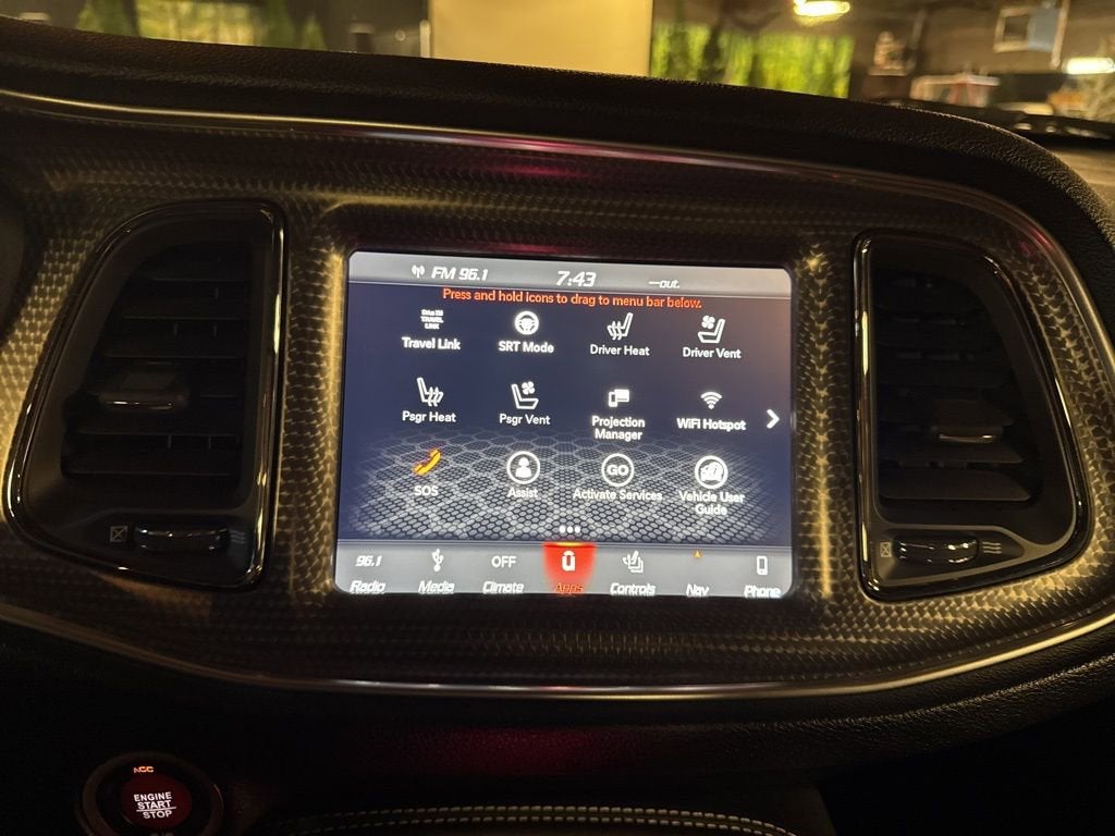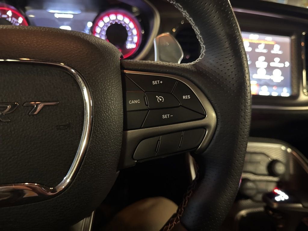 1-Yr SiriusXM Guardian Trial, 18 Speakers Premium Audio System, 2.62 Rear Axle Ratio, 220 MPH Primary Speedometer, 4-Wheel Disc Brakes, 4G LTE Wi-Fi Hot Spot, 5-Year SiriusXM Traffic Service, 5-Year SiriusXM Travel Link Service, 6 Speakers, 8.4 Touchscreen Display, ABS brakes, Adaptive suspension, Air Conditioning, All Seats w/Leather Trim, Alloy wheels, AM/FM radio: SiriusXM, Anti-whiplash front head restraints, Apple CarPlay, Apple CarPlay/Android Auto, Auto-dimming Rear-View mirror, Automatic temperature control, Blind Spot & Cross Path Detection, Brake assist, Bumpers: body-color, Compass, Dark Engine Turn Interior Accents, Delay-off headlights, Driver Convenience Group, Driver door bin, Driver vanity mirror, Dual front impact airbags, Dual front side impact airbags, Electronic Stability Control, Emergency communication system: SiriusXM Guardian, For Details, Visit DriveUconnect.com, Four wheel independent suspension, Front anti-roll bar, Front Bucket Seats, Front Center Armrest, Front dual zone A/C, Front reading lights, Fully automatic headlights, Garage door transmitter, Google Android Auto, GPS Antenna Input, GPS Navigation, harman/kardon Audio Group w/Subwoofer, harman/kardon GreenEdge Amp, HD Radio, Heated door mirrors, Heated front seats, Heated steering wheel, Hellcat Logo Laguna Leather Seat, Hellcat Logo Nappa/Alcantara Seat, High-Intensity Discharge Headlamps, Illuminated entry, Integrated Center Stack Radio, Integrated Voice Command w/Bluetooth®, Laguna Leather Package, Leather Shift Knob, Low tire pressure warning, Media Hub (2 USB, AUX), Outside temperature display, Overhead airbag, Overhead console, Painted Black Satin Graphics Package, Panic alarm, ParkView Rear Back-Up Camera, Passenger door bin, Passenger vanity mirror, Plus Package, Power door mirrors, Power driver seat, Power Multi-Function Foldaway Mirrors, Power steering, Power Sunroof, Power Tilt/Telescope Steering Column, Power windows, Premium Laguna Door Trim Panel, Quick Order Package 27Z SRT Hellcat Redeye, Radio data system, Radio: Uconnect 4C w/8.4 Display, Rear anti-roll bar, Rear reading lights, Rear seat center armrest, Rear window defroster, Remote keyless entry, Security system, SiriusXM Satellite Radio, SiriusXM Traffic Plus, SiriusXM Travel Link, Speed control, Speed-sensing steering, Split folding rear seat, Spoiler, Sport steering wheel, SRT Hellcat Logo Houndstooth Seats, SRT Performance Spoiler, SRT Power Chiller, Steering wheel mounted audio controls, Suede Door Trim Panel w/Map Pocket, Surround Sound, Tachometer, Telescoping steering wheel, Tilt steering wheel, Tilt/Telescope Steering Column, Traction control, Trip computer, Trunk Mounted Subwoofer, Uconnect 4C Nav w/8.4 Display, USB Host Flip, Variably intermittent wipers, Ventilated Front Seats, Wheels: 20 x 9.5 Matte Vapor SRT Aluminum, Wheels: 20 x 9.5 SRT Lowgloss Black Performance.