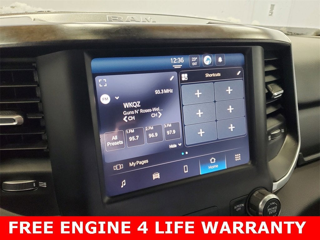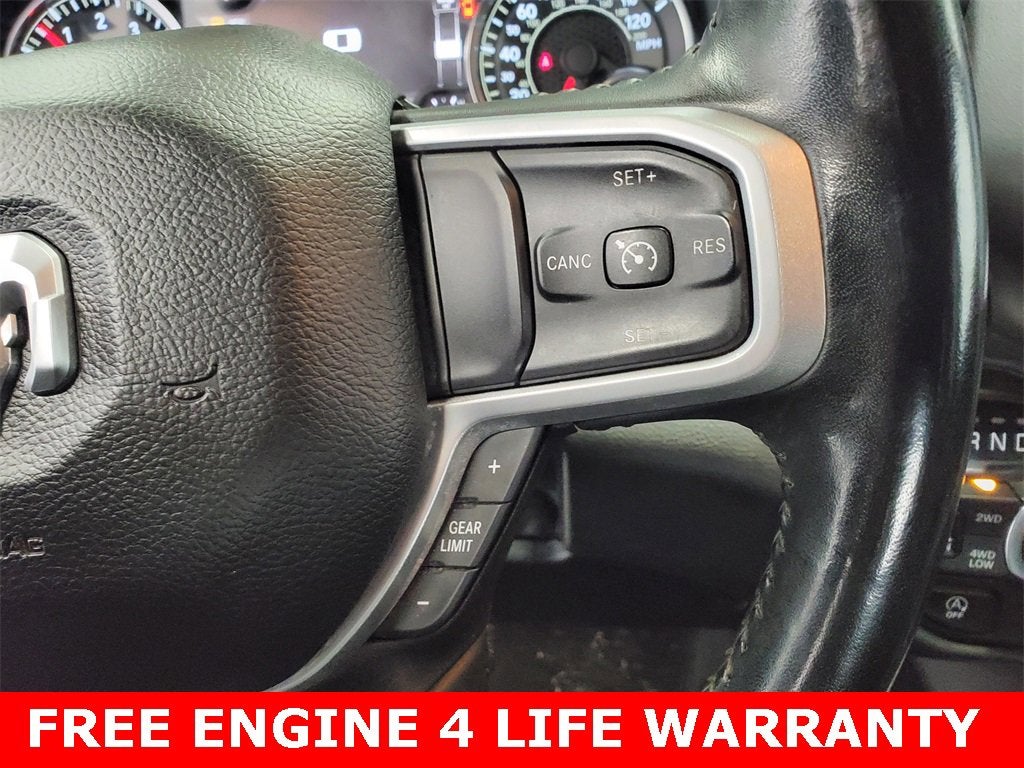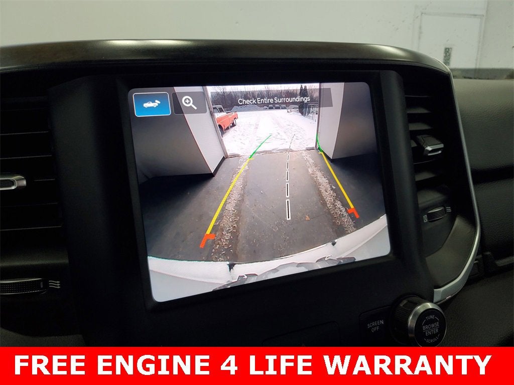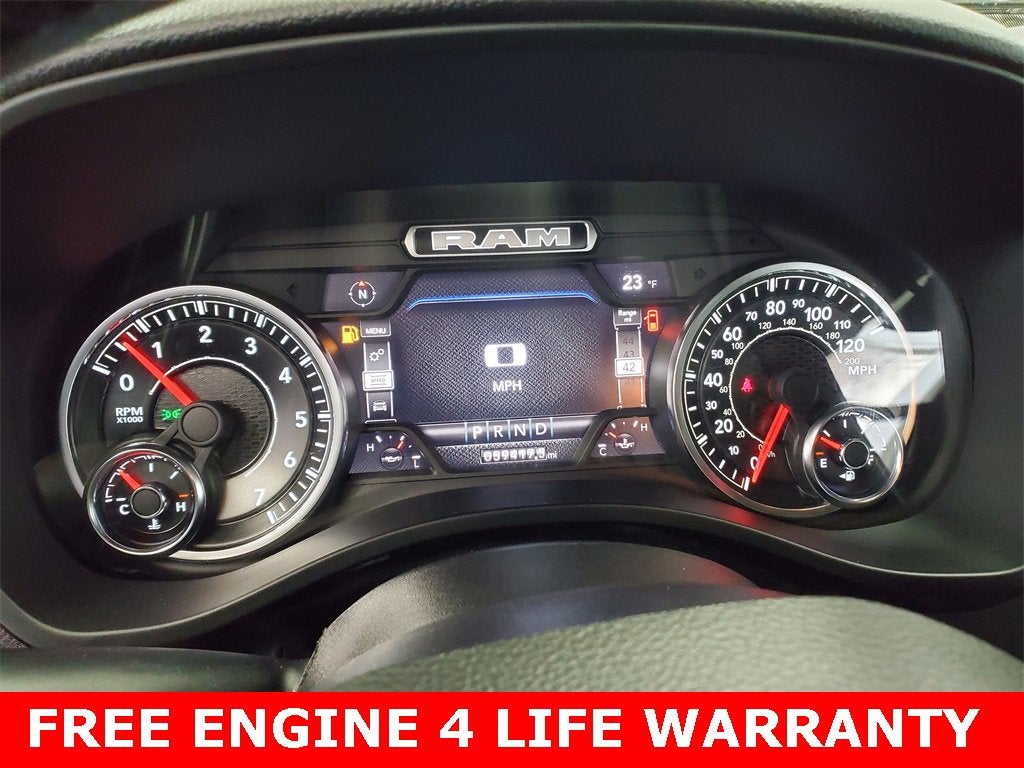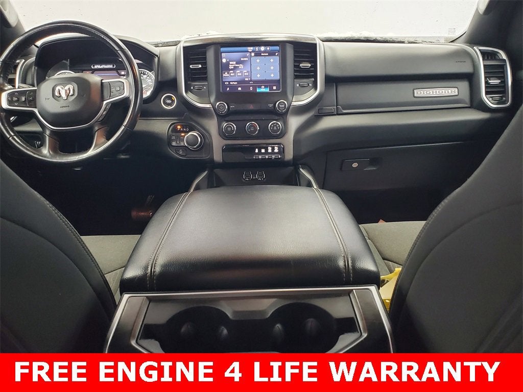 ** ENGINES 4 LIFE WARRANTY APPLIES **, 2nd Row In Floor Storage Bins, 3 Rear Seat Head Restraints, 4 Way Front Headrests, 4-Wheel Disc Brakes, 48V Belt Starter Generator, 4G LTE Wi-Fi Hot Spot, 6 Speakers, 8.4 Touchscreen Display, ABS brakes, Air Conditioning, Alloy wheels, AM/FM radio, Apple CarPlay, Auto-Dimming Exterior Driver Mirror, Auto-Dimming Rear-View Mirror, Big Horn Badge, Big Horn Level 1 Equipment Group, Black Exterior Mirrors, Black Premium Power Mirrors, Bluetooth® Handsfree Phone & Audio, Brake assist, Bumpers: chrome, Class IV Receiver Hitch, Cloth Bench Seat, Cluster 3.5 TFT Color Display, Cluster 7.0 TFT Color Display, Compass, Connected Services Delete Credit, Connectivity - US/Canada, Convex Wide-Angle Mirror Insert, Delay-off headlights, Driver door bin, Dual front impact airbags, Dual front side impact airbags, Electronic Stability Control, Emergency communication system: SiriusXM Guardian, Exterior Mirrors Courtesy Lamps, Exterior Mirrors w/Heating Element, Exterior Mirrors w/Supplemental Signals, For Details, Visit DriveUconnect.com, Front anti-roll bar, Front Center Armrest w/Storage, Front fog lights, Front reading lights, Front Seat Back Map Pockets, Front wheel independent suspension, Fully automatic headlights, Global Telematics Box Module (TBM), Glove Box Lamp, Google Android Auto, GPS Antenna Input, Heated door mirrors, Heavy-Duty Engine Cooling, Illuminated entry, Integrated Center Stack Radio, Integrated Voice Command w/Bluetooth®, Leather steering wheel, Low tire pressure warning, Occupant sensing airbag, Outside temperature display, Overhead airbag, Overhead console, Panic alarm, ParkSense Front/Rear Park Assist w/Stop, ParkView Rear Back-Up Camera, Passenger door bin, Passenger vanity mirror, Power 2-Way Driver Lumbar Adjust, Power 8-Way Driver Seat, Power Adjustable Pedals, Power door mirrors, Power steering, Power windows, Power-Folding Mirrors, Quick Order Package 23Z Big Horn, Radio data system, Radio: Uconnect 3 w/5 Display, Radio: Uconnect 5 W w/8.4 Display, Rear 60/40 Folding Seat, Rear anti-roll bar, Rear Dome w/On/Off Switch Lamp, Rear Power Sliding Window, Rear seat center armrest, Rear step bumper, Rear Underseat Compartment Storage (DISC), Rear Wheelhouse Liners, Rear Window Defroster, Remote keyless entry, Remote Start System, SiriusXM Radio Service, SiriusXM Satellite Radio, Speed control, Split folding rear seat, Steering wheel mounted audio controls, Sun Visors w/Illuminated Vanity Mirrors, Tachometer, Telescoping steering wheel, Tilt steering wheel, Traction control, Trip computer, Universal Garage Door Opener, USB Host Flip, Variably intermittent wipers, Voltmeter, Wheels: 18 x 8 Cast-Aluminum Painted, Wheels: 20 x 9 Aluminum Chrome Clad (WRK).