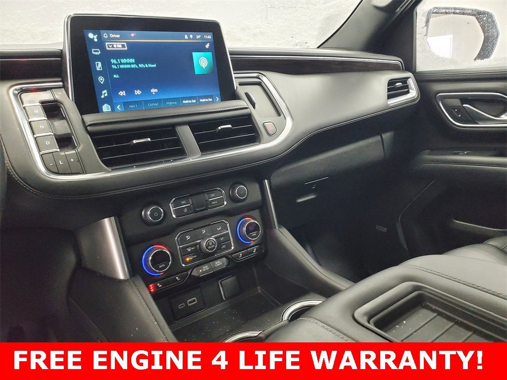 10-Way Power Driver & Passenger Seat Adjusters, 1st & 2nd Row Color-Keyed Carpeted Floor Mats, 1st & 2nd Rows Premium Floor Liners (LPO), 2-Speed Active Electronic AutoTrac Transfer Case, 2nd Row Pwr Release 60/40 Split-Folding Bench Seat, 3.23 Rear Axle Ratio, 3rd Row 60/40 Power-Folding Split-Bench, 3rd row seats: split-bench, 4-Wheel Disc Brakes, 9 Speakers, ABS brakes, Advanced Trailering Package, Air Conditioning, All-Weather Cargo Mat (LPO), Alloy wheels, AM/FM radio: SiriusXM with 360L, Apple CarPlay/Android Auto, Auto High-beam Headlights, Auto-Dimming Inside Rear-View Mirror, Auto-dimming Rear-View mirror, Automatic temperature control, Black Tubular Assist Steps, Bose 9-Speaker Stereo Audio System Feature, Brake assist, Bright Front & Rear Door Sill Plates, Bumpers: body-color, Color-Keyed Carpeting Floor Covering, Compass, Delay-off headlights, Driver & Front Outboard Passenger Airbags, Driver Alert Package, Driver door bin, Driver vanity mirror, Dual front impact airbags, Dual front side impact airbags, Dual-Pane Power Panoramic Sunroof, Electronic Stability Control, Emergency communication system: OnStar and Chevrolet connected services capable, Enhanced Driver Information Center, Extra Capacity Cooling System, Floor Console w/Storage Area, Four wheel independent suspension, Front anti-roll bar, Front Bucket Seats, Front Center Armrest, Front dual zone A/C, Front High-Approach Angle Fascia, Front reading lights, Fully automatic headlights, Garage door transmitter, Hands-Free Rear Power Programmable Liftgate, HD Surround Vision, Heated 2nd Row Outboard Seats, Heated door mirrors, Heated Driver & Front Passenger Seats, Heated front seats, Heated Steering Wheel, Heavy-Duty Air Filter, Hill Descent Control, Hitch Guidance w/Hitch View, Illuminated entry, Infotainment Display, Integrated Trailer Brake Controller, Lane Change Alert w/Side Blind Zone Alert, Leather-Appointed Seating, LED Daytime Running Lamps, Low tire pressure warning, Luxury Package, Max Trailering Package, Memory seat, Memory Settings, Memory Settings For Driver, Navigation System, Occupant sensing airbag, Outside Heated Power-Adjustable Mirrors, Outside temperature display, Overhead airbag, Overhead console, Panic alarm, Passenger door bin, Passenger vanity mirror, Power door mirrors, Power driver seat, Power Liftgate, Power passenger seat, Power Release 2nd Row Bucket Seats, Power steering, Power Tilt & Telescopic Steering Column, Power windows, Preferred Equipment Group 2Z7, Premium audio system: Chevrolet Infotainment 3 Premium, Premium Smooth Ride Suspension, Radio: Chevrolet Infotainment 3 Premium System, Rain sensing wipers, Rear air conditioning, Rear anti-roll bar, Rear Cross Traffic Alert, Rear Pedestrian Alert, Rear reading lights, Rear seat center armrest, Rear window defroster, Rear window wiper, Red Recovery Hooks, Remote keyless entry, Remote Start, Roof rack: rails only, Security system, SiriusXM Radio w/360L, Smart Trailer Integration Indicator, Speed control, Speed-sensing steering, Split folding rear seat, Spoiler, Steering wheel mounted audio controls, Tachometer, Telescoping steering wheel, Tilt steering wheel, Traction control, Trailer Tire Pressure Monitor Sensors, Trip computer, Universal Home Remote, Variably intermittent wipers, Voltmeter, Wheels: 20 x 9 Machined Aluminum, Wireless Charging, Wrapped Steering Wheel.
